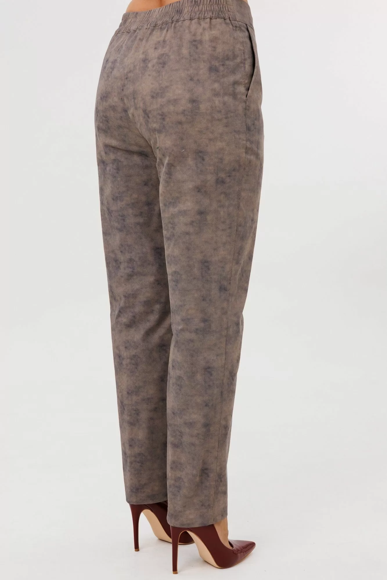Брюки прямого силуэта с высокой посадкой, в боковых швах наклонные карманы, по срезу банта-застежка-молния. Верхний срез оформлен поясом, с эластичной резинкой по задней половинке