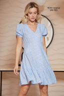 Цвет- “ Чистая и водянистая вода.” Стильное летнее платье без подкладки длиной выше колена из натурального льна.. Изделие А- образного силуэта без застежки. Спереди декоративные вытачки - защипы и имитация планки.V-образный вырез горловины. Спинка так же с вытачками- защипами. . Рукав втачной , сверху собран на сборку, а снизу на резинке. Низ платья декорирован мягким воланом.