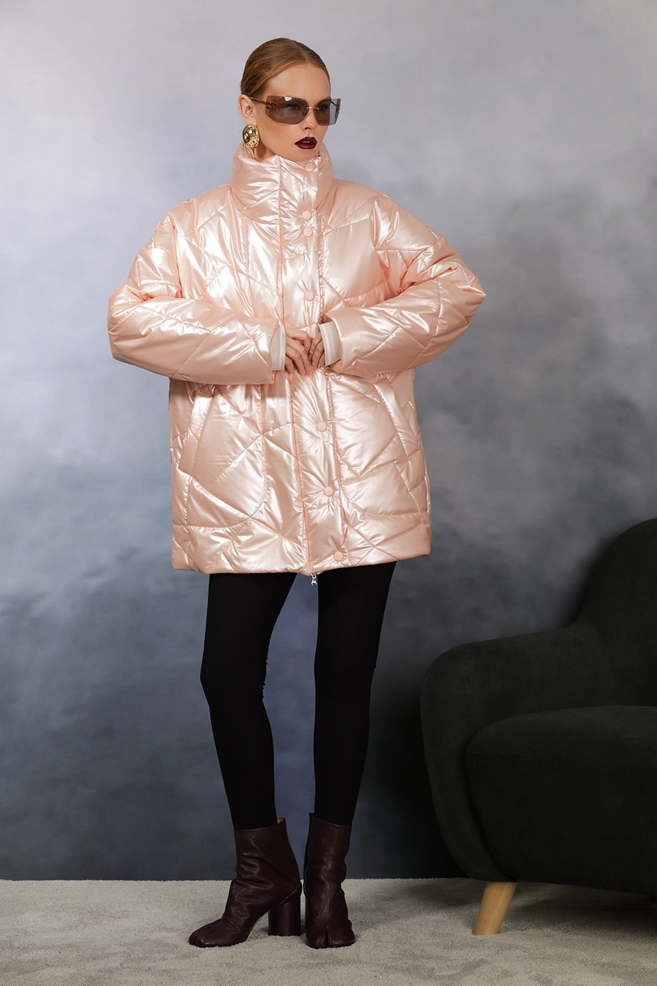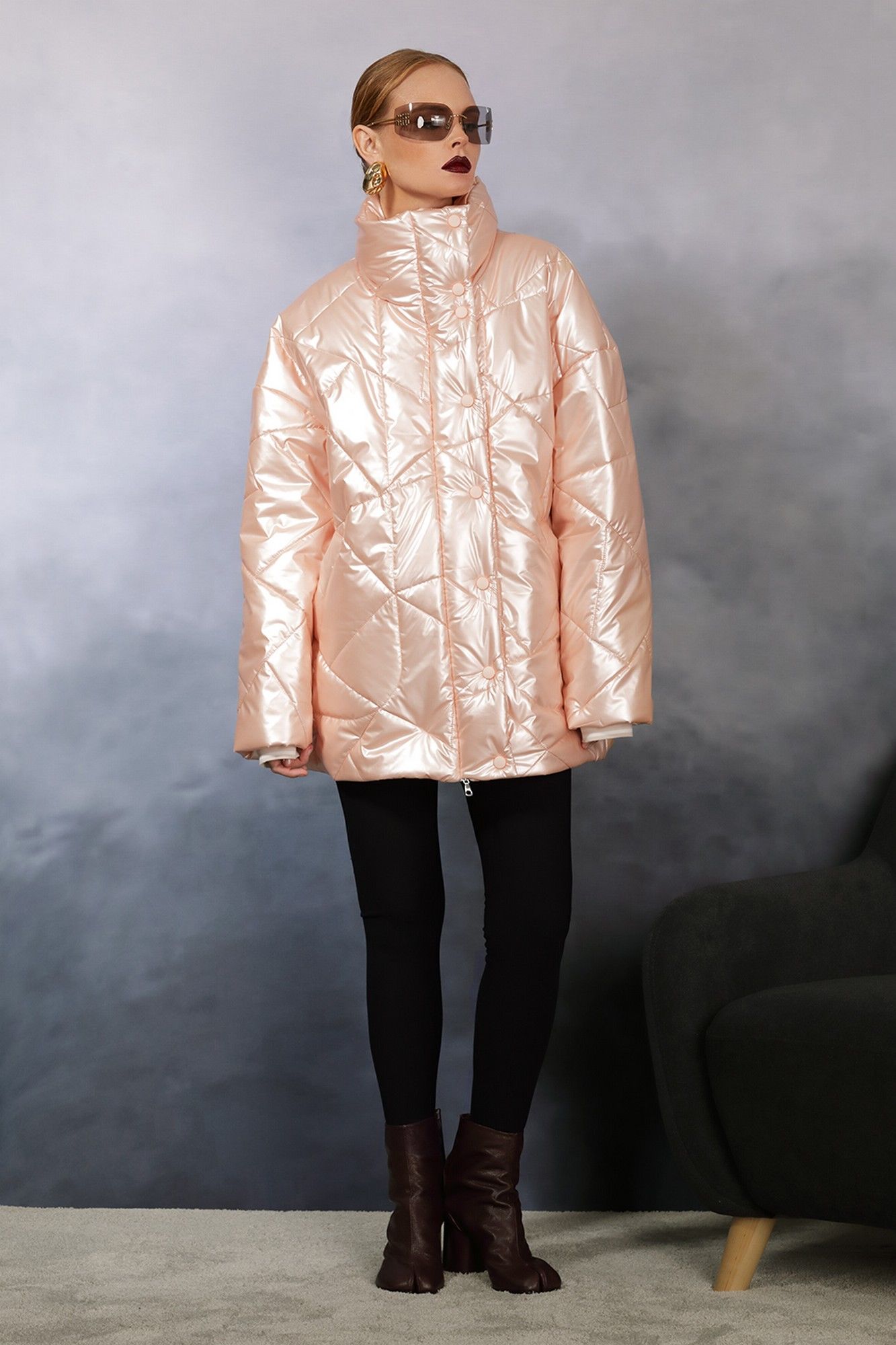 Цвет-“абрикосовый” Изделие зимнее Стильная удлиненная куртка, выполнена из плотной плащевой ткани с мембраной (не пропускает влагу). Изделие прямого силуэта, длиной ниже линии бедра. Застежка центральная на молнию, сверху закрывается притачной планкой на кнопки. На полочке прорезные карманы с листочками. Спущенная линия плеча. Объемный длинный рукав. Низ рукава на плотной притачной манжете. Спинка прямая без среднего шва. Воротник – высокая стойка. Низ куртки на резинке, что прекрасно позволяет прилегать изделию по фигуре. Куртка идеально подходит для зимних прогулок.