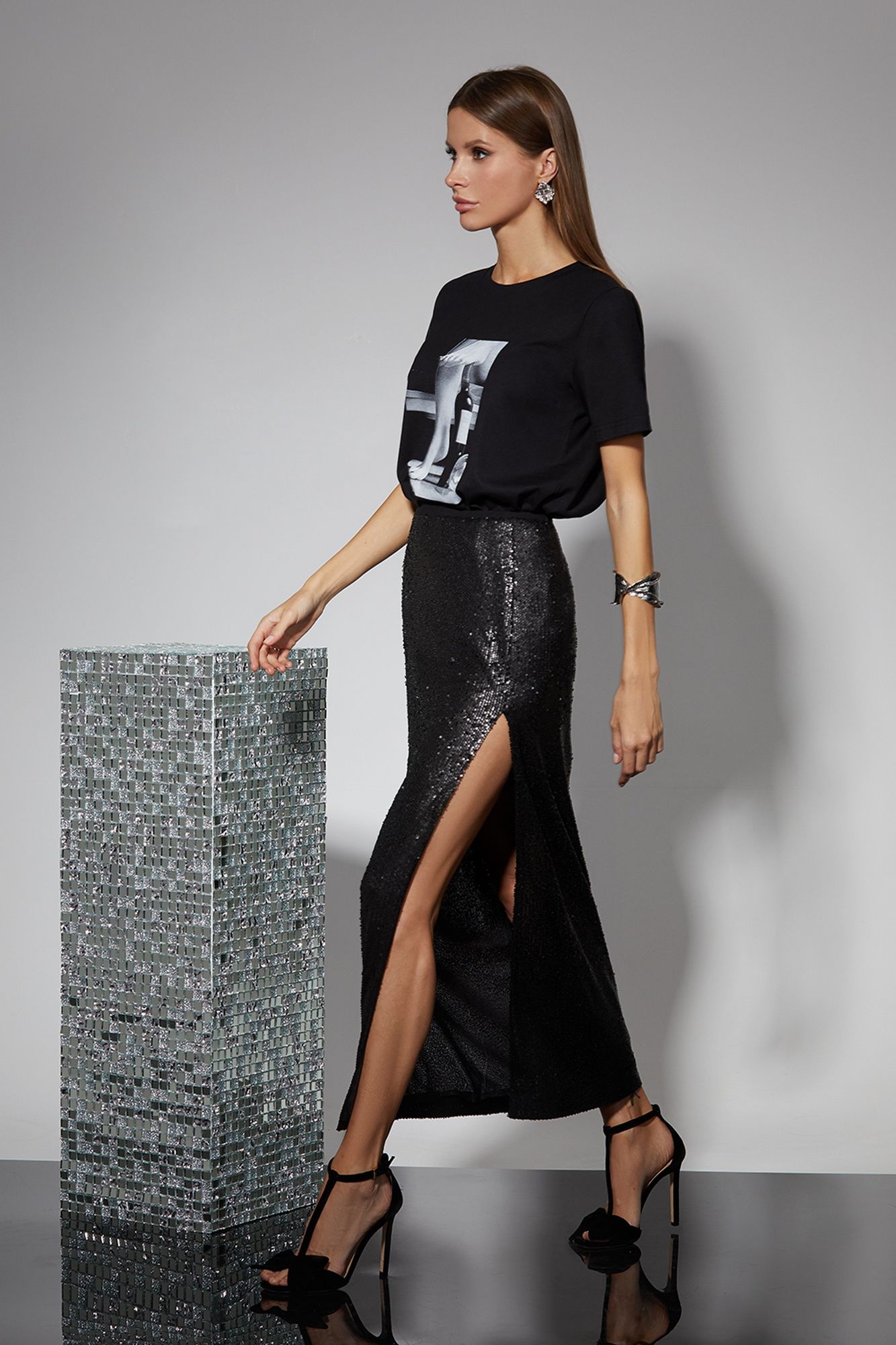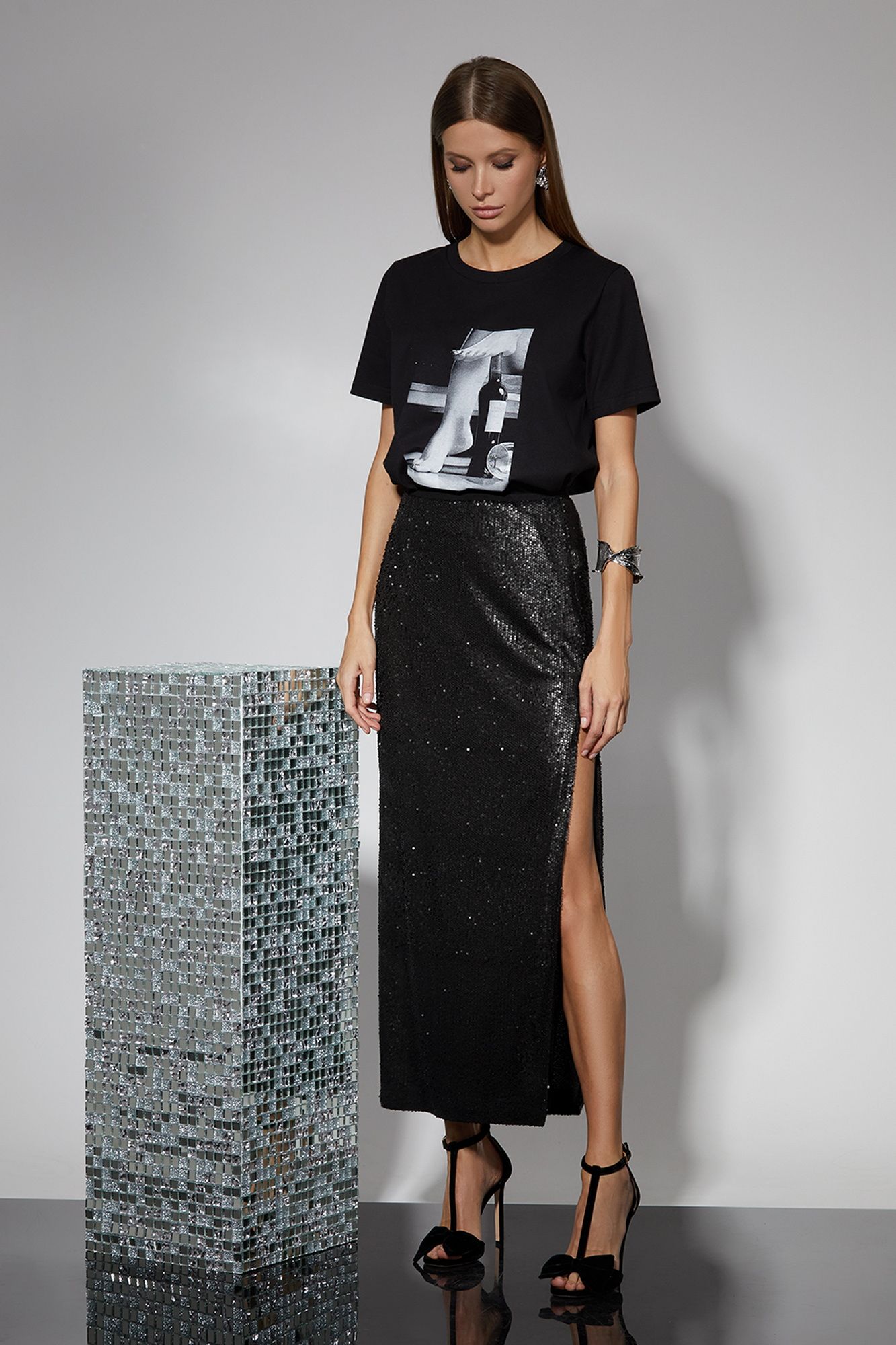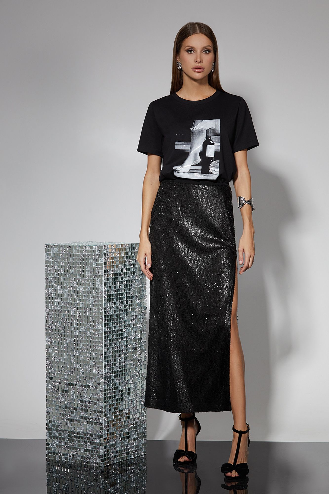 Футболка оверсайз выполнена из плотного хлопкового трикотажного полотна. Втачной короткий рукав. Горловина круглая с притачной планкой. Дизайнерский принт на передней половинке футболки. Спинка прямая. Длина изделия 61/63 Длина рукава 21