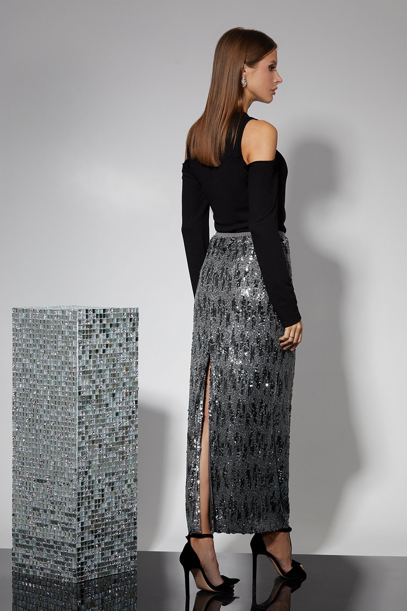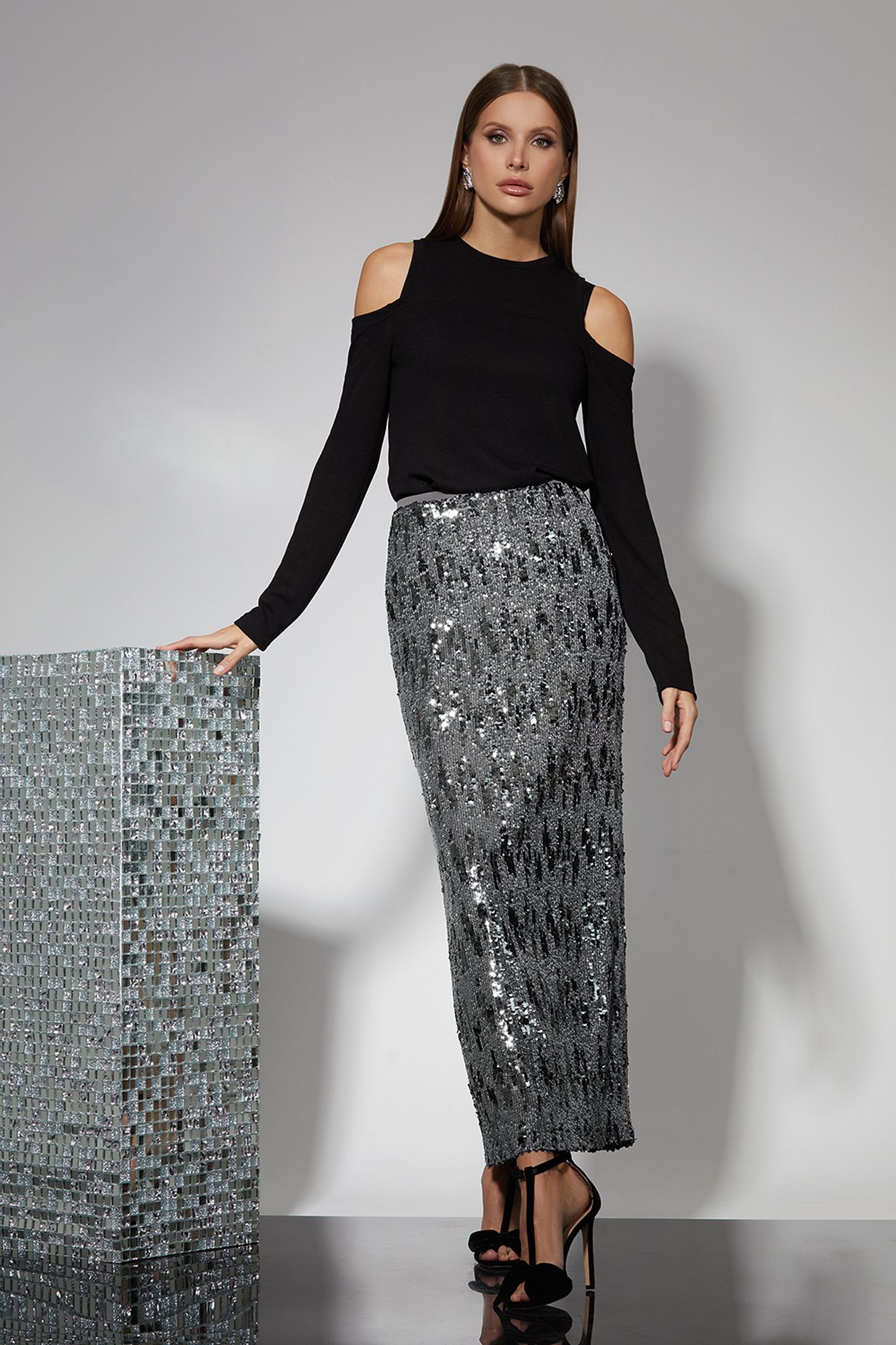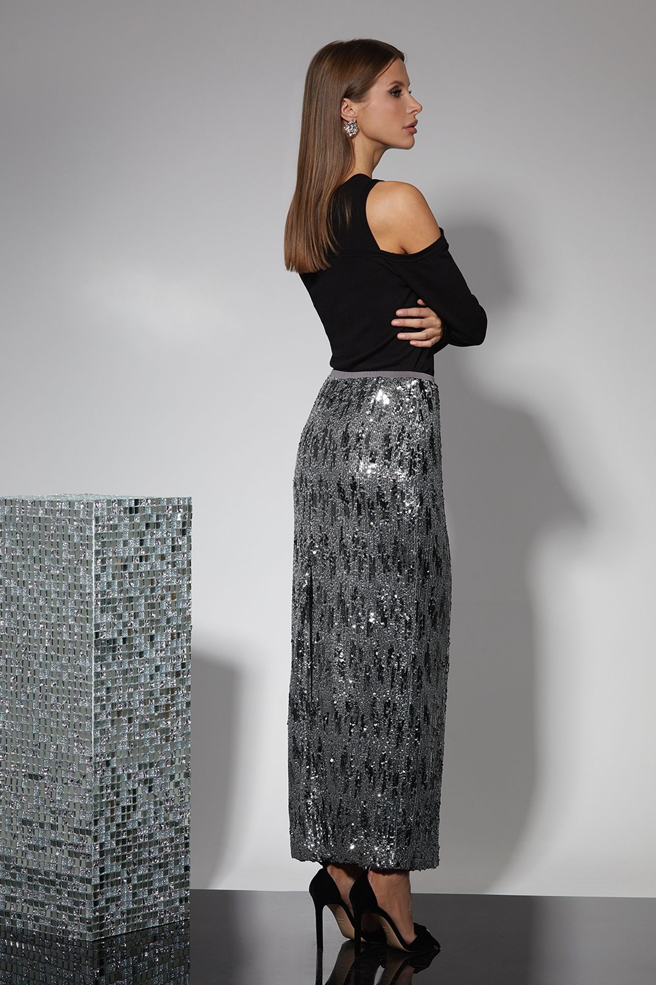 Изделие на вискозной подкладке. Юбка длиной maxi. Высокий разрез сзади. Изделие на резинке. Длина изделия 43/46