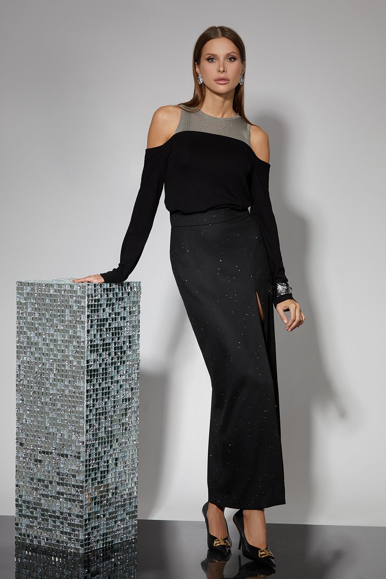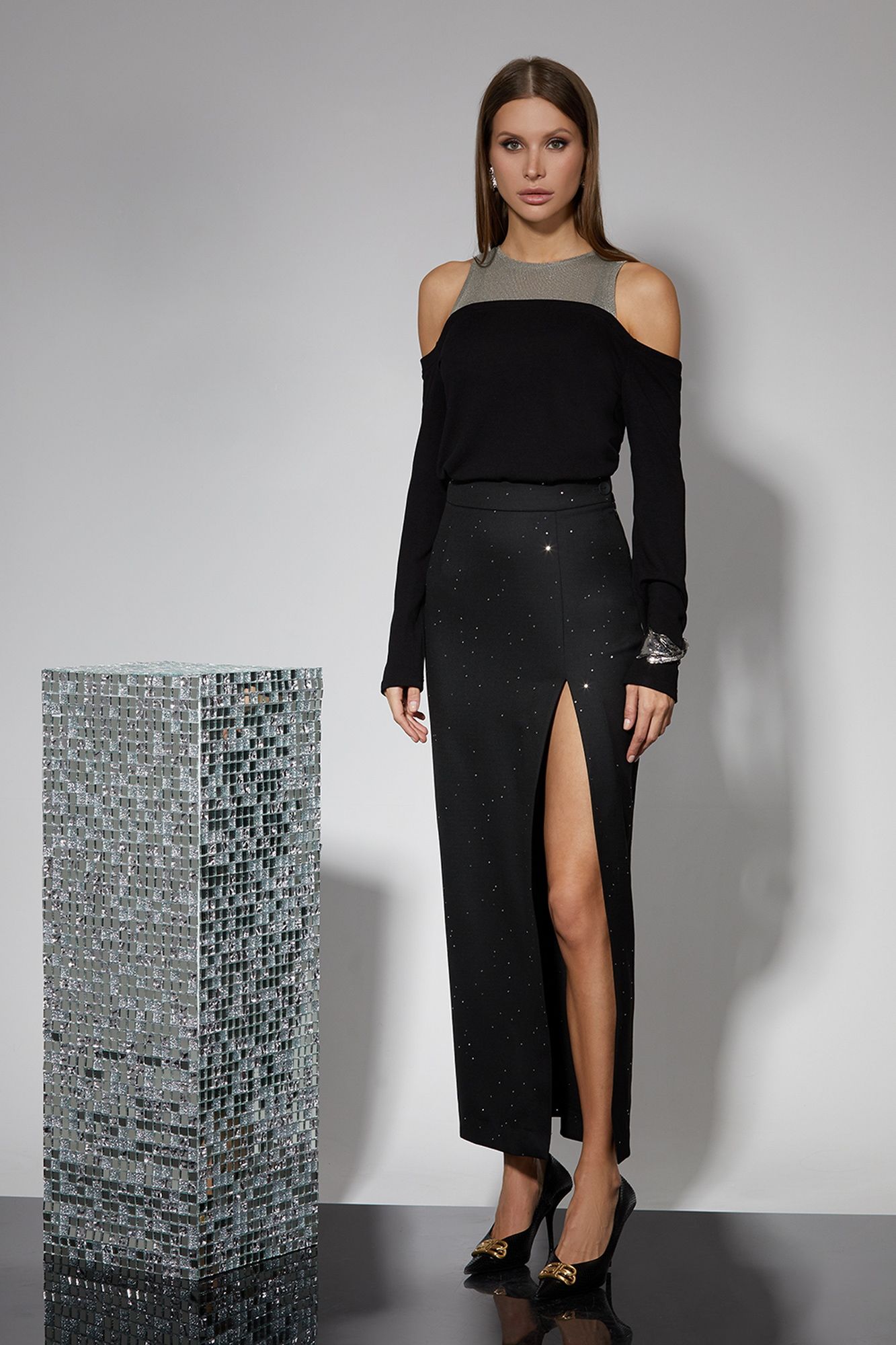 Блуза из трикотажного мягкого полотна. Изделие полуприлегающего силуэта. Круглая горловина. Фигурный подрез по полочке и по спинке. Кокетка выполнена из отделочной ткани. Втачной длинный рукав. Длина изделия 62 Длина рукава 56