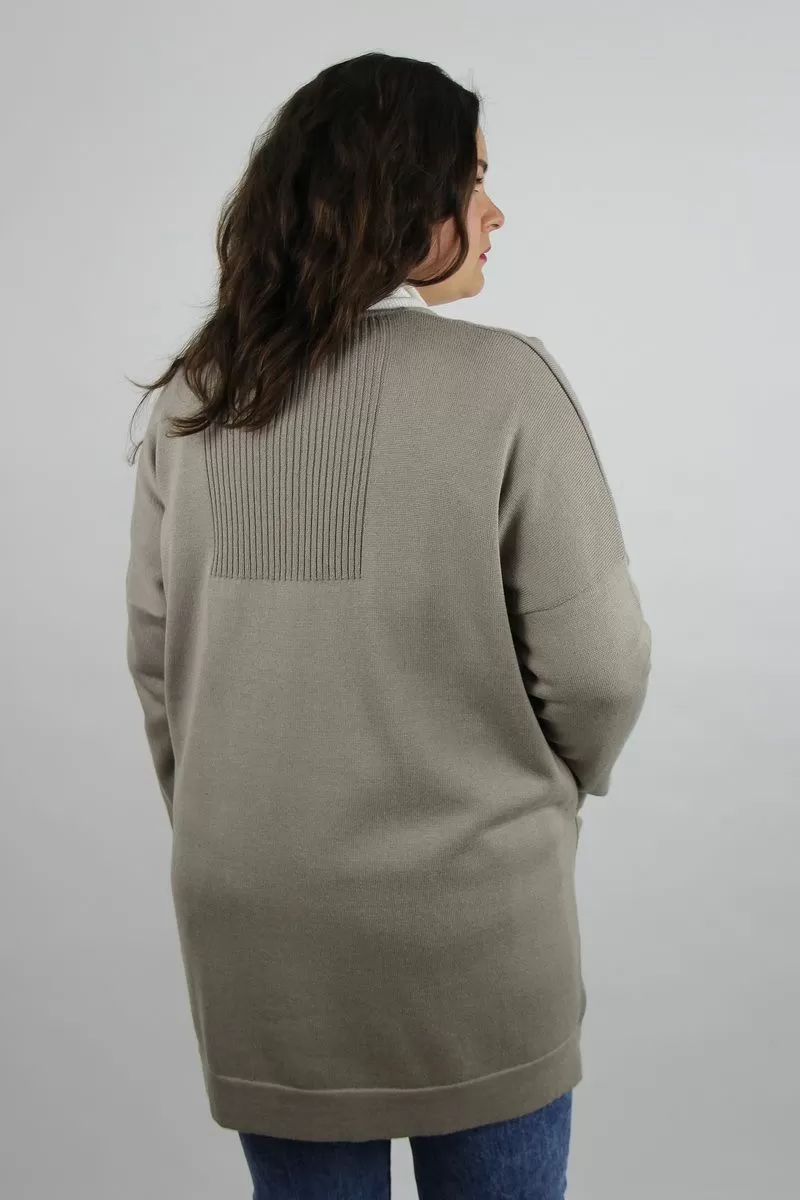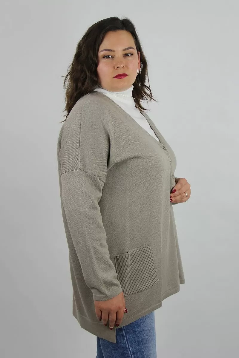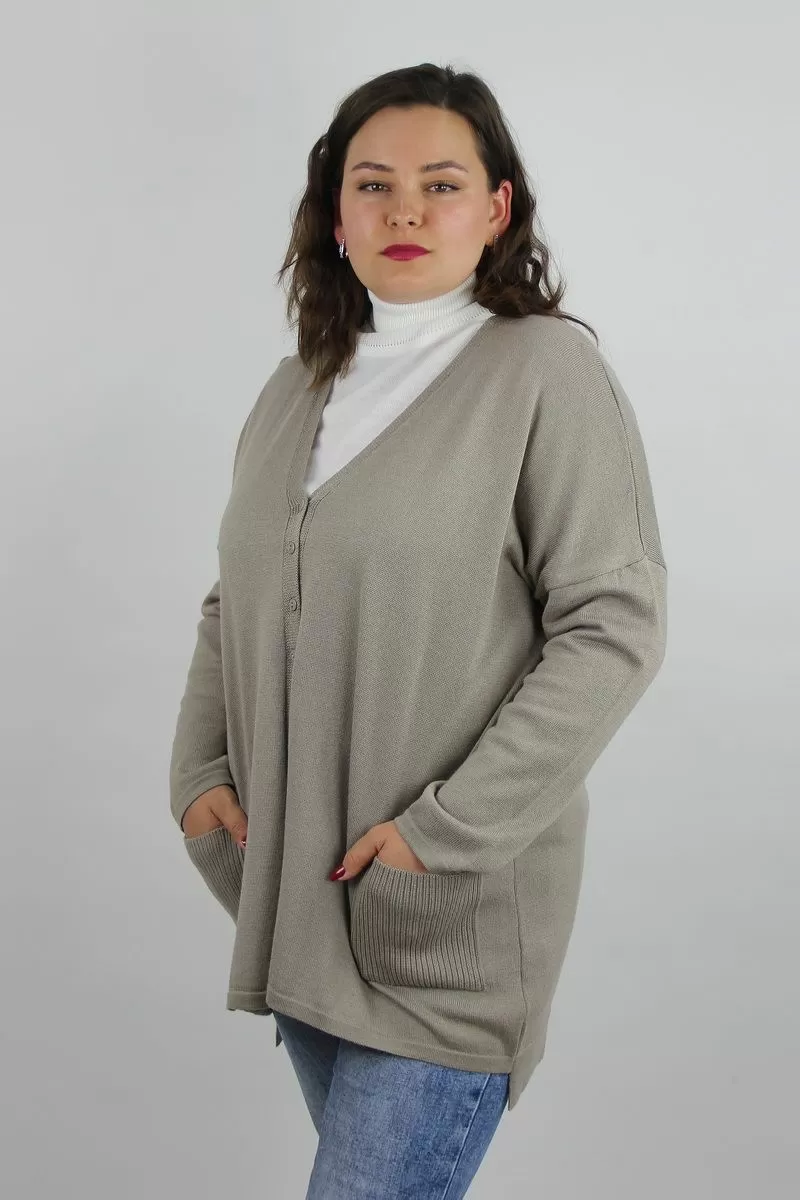 Жакет второго слоя одежды, прямого силуэта со спущенным плечом. Рукав втачной, узкий (окат рукава прямой). Y-образный вырез горловины вывязан. Застежка на петли и пуговицы (4шт). Срез горловины переда и срез борта регулярные. В низу переда расположены накладные карманы. Низ рукавов и переда заработаны сдвоенной кулирной гладью высотой 1,5см +-0,2см. Низ спинки заработан сдвоенной кулирной гладью высотой 5,5см +-0,5см.По центру спинки, в области ростка вывязывается ластик 2х2.