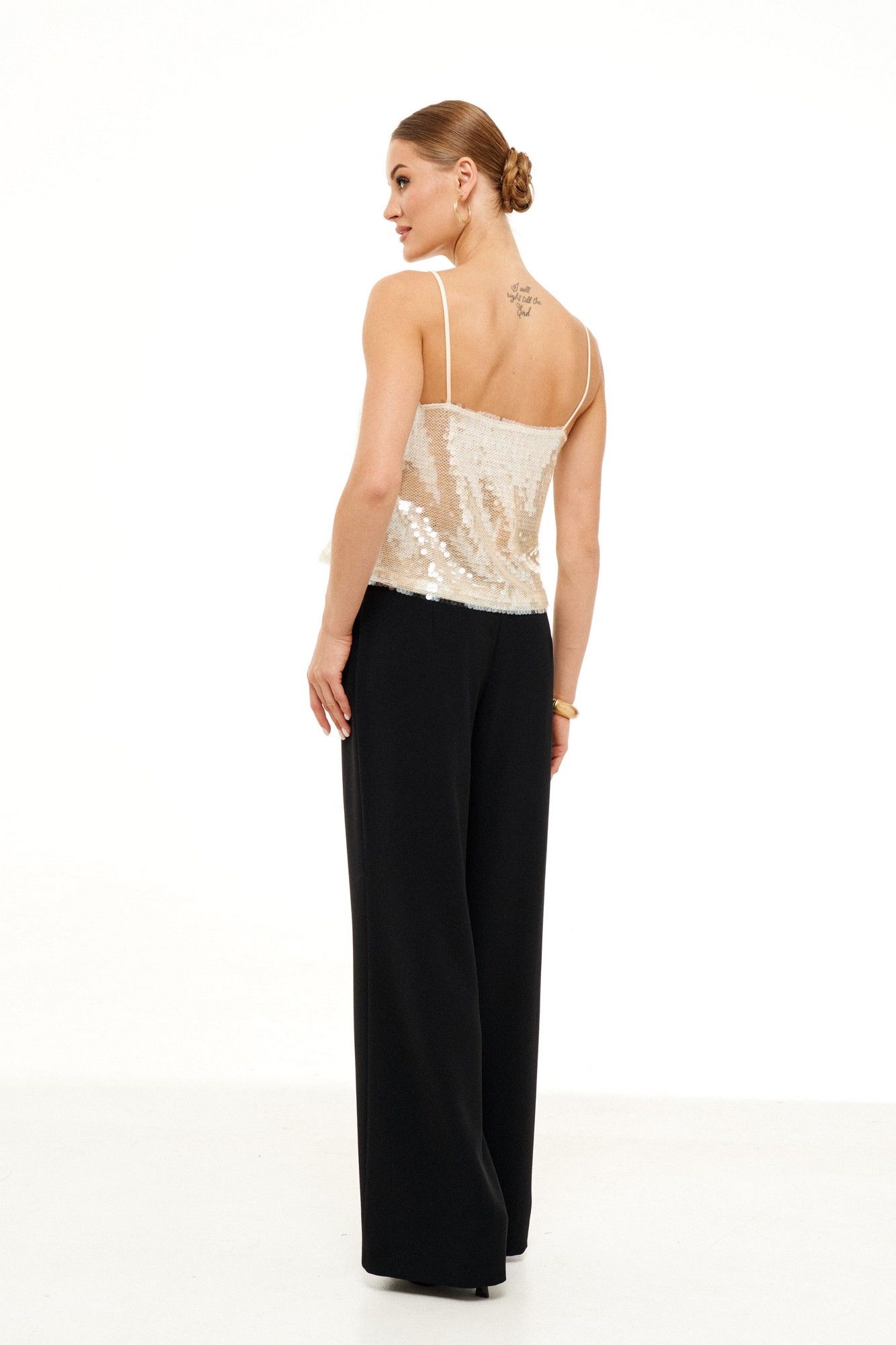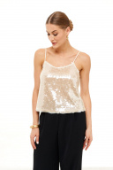 Топ из пайеток полуприлегающего силуэта на подкладе. Бретели не регулируются.