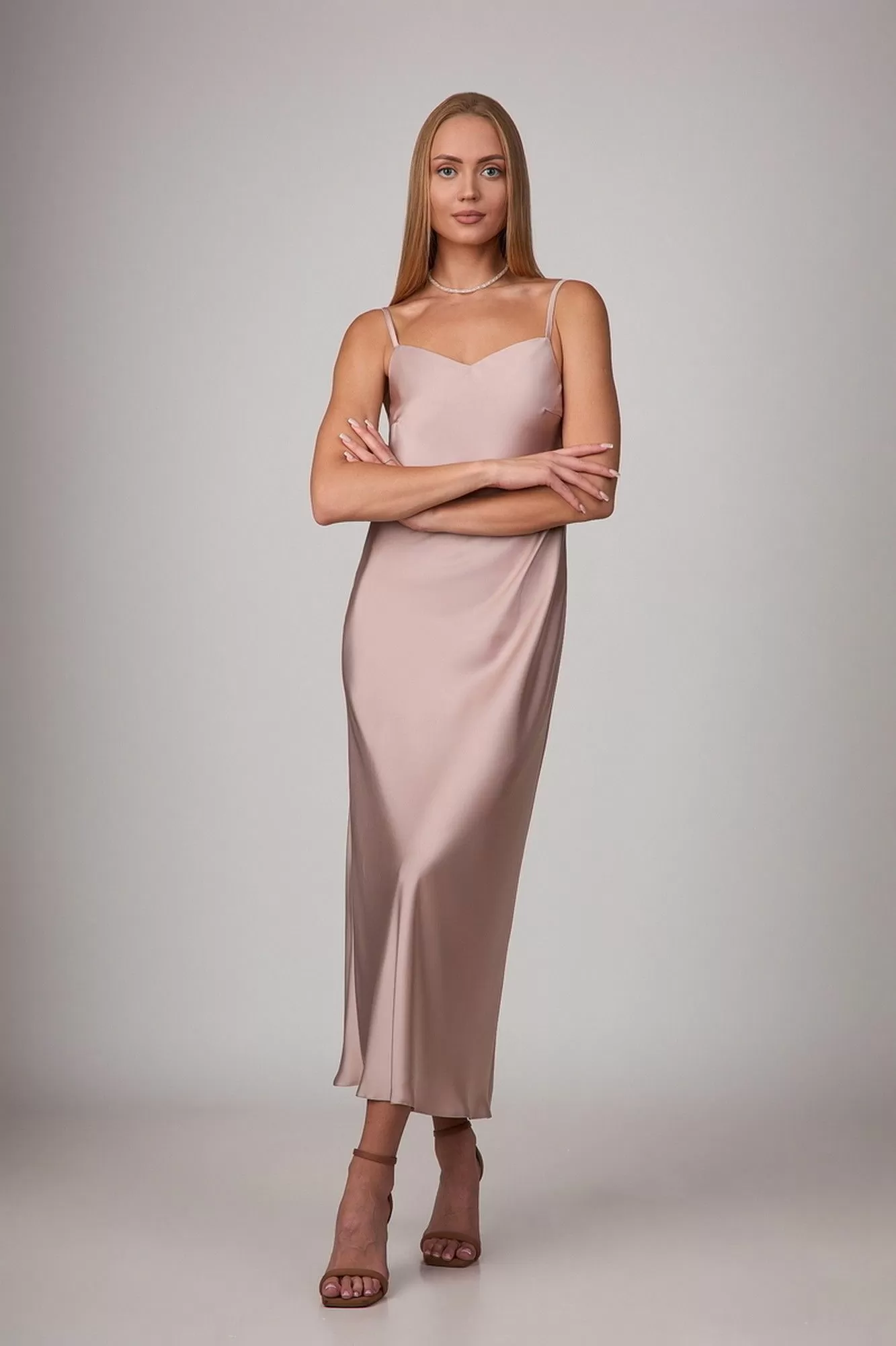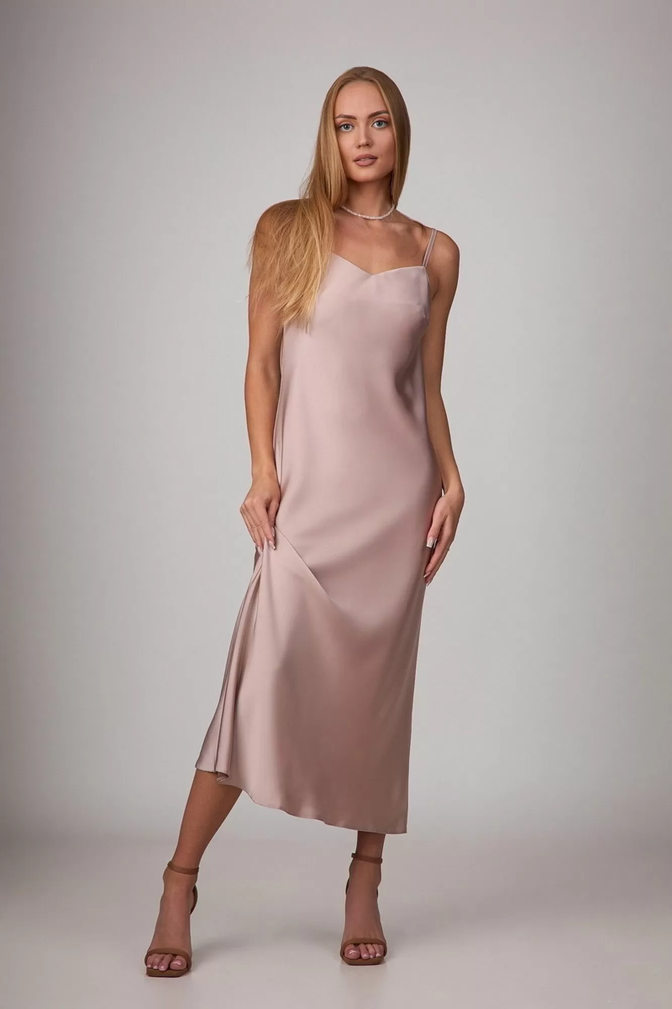 Роскошное платье-комбинация из атласа. Крой выполнен по косой, что обеспечит великолепную посадку на фигуре. Бретели регулируемые.