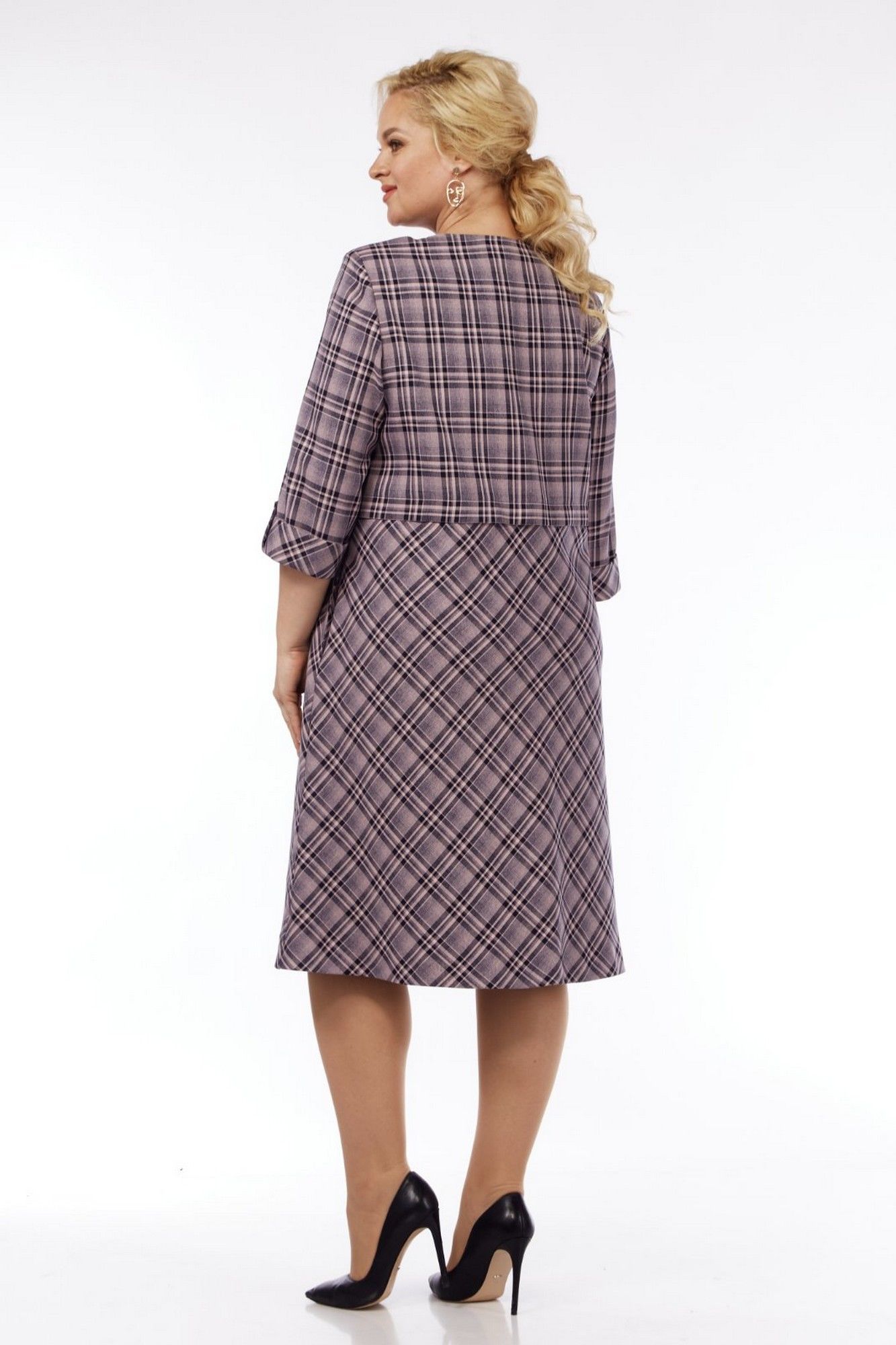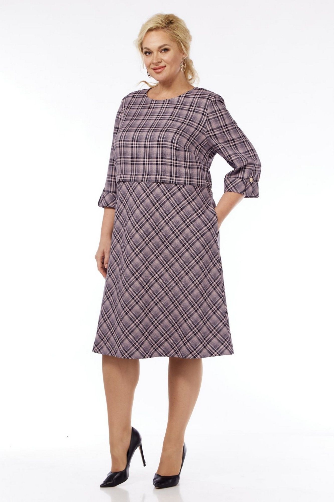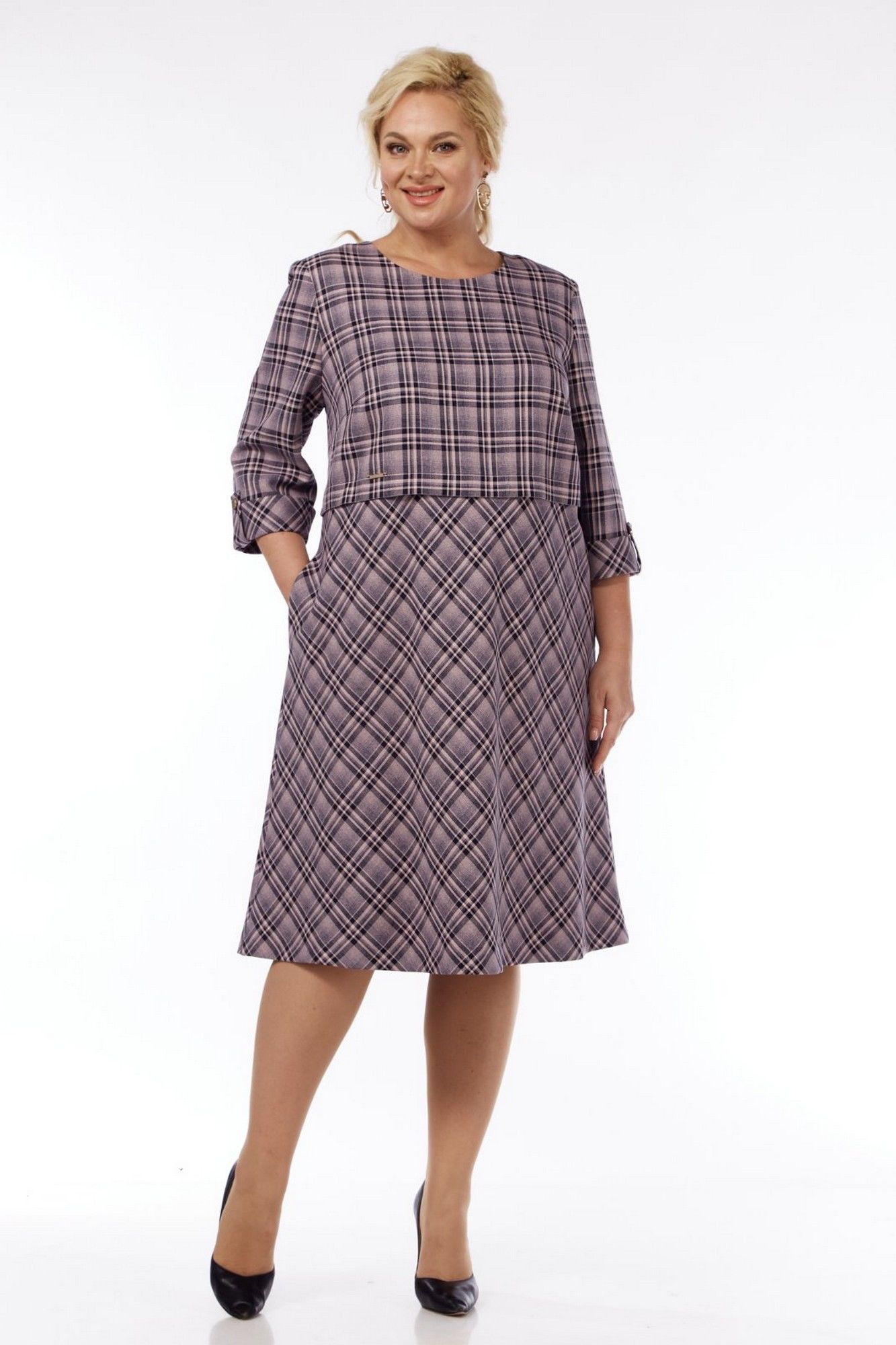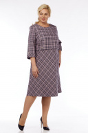 Силуэт полуприлегающий, расклешённый к низу. Рукав втачной, одношовный, внизу с отворотом. Отворот фиксируется патой с застёжкой на пуговицу. Длина рукава 44 см. Горловина закруглённая, на обтачке. Платье немного выше уровня талии отрезное. По линии подреза заложена отлетная складка. Перед с нагрудными вытачками. На уровне бёдер в боковых швах выполнены потайные карманы. Длина платья по спинке 106см. Платье выполнено из костюмно-плательной ткани. 58 р. – ПОГ 63, ПОБ 70