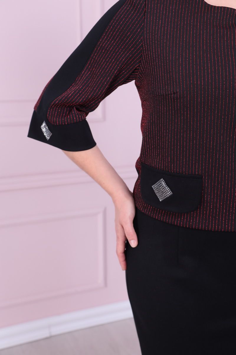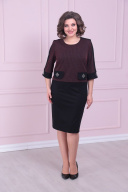 Платье женское полуприлегающего силуэта из очень красивой костюмно-плательной ткани . Платье имитация костюма. В качестве отделки используются пришивная тесьма однотонного цвета по рукаву. По переду нагрудные выточки. Рукав ¾, чуть ниже уровня локтя. По спинке обработана потайная молния. Есть шлица. Платье на подкладке. Украшает платья служит имитация накладных карманов по переду. 48 Длина изделия - 106см, Длина рукава - 37см, Ширина по груди - 104см, Ширина по талии - 94см, Ширина по бедрам - 108см, 50 Длина изделия - 106см, Длина рукава - 37см, Ширина по груди - 108см, Ширина по талии - 98см, Ширина по бедрам - 112см, 52 Длина изделия - 106см, Длина рукава - 37см, Ширина по груди - 112см, Ширина по талии - 102см, Ширина по бедрам - 116см, 54 Длина изделия - 108см, Длина рукава - 39см, Ширина по груди - 116см, Ширина по талии - 106см, Ширина по бедрам - 120см, 56 Длина изделия - 108см, Длина рукава - 39см, Ширина по груди - 120см, Ширина по талии - 110см, Ширина по бедрам - 124см, 58 Длина изделия - 108см, Длина рукава - 39см, Ширина по груди - 124см, Ширина по талии - 114см, Ширина по бедрам - 128см,