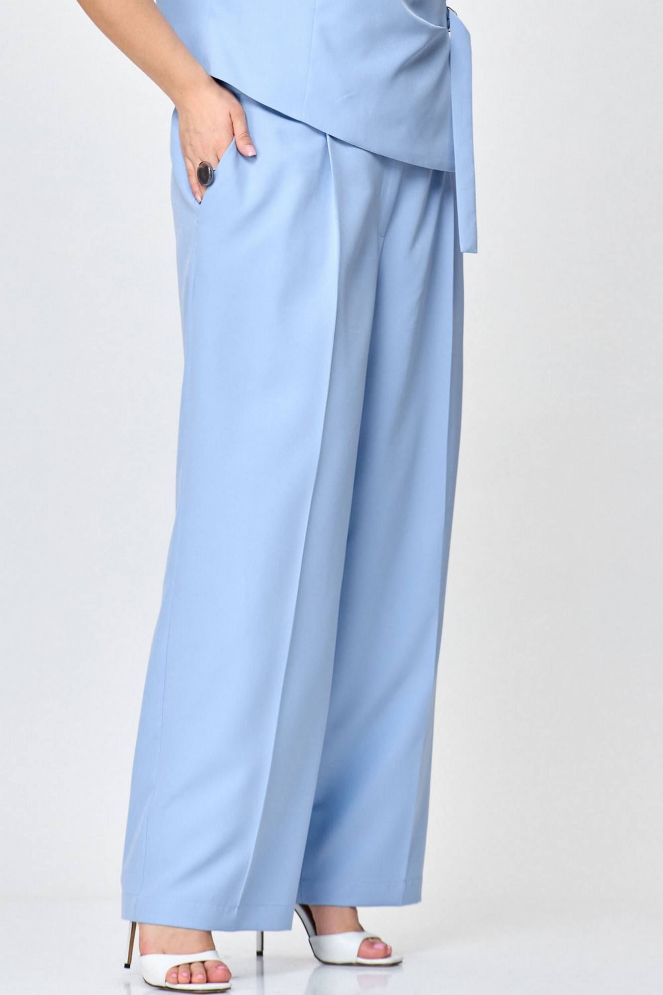 Брюки палаццо выполнены из костюмной ткани. Брюки со складкой. Пояс частично на резинке, в боковых швах карманы. Идеальный вариант для офисного и нарядного образа! Брюки брюк 102 см Ширина по низу 30 см