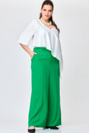 Палаццо - элегантный элемент одежды, который красиво подчеркивает фигуру и удлиняет ноги. Брюки палаццо – тренд, который актуально смотрится не только на подиуме, но и в повседневной жизни. Универсальная вещь хорошо сочетается со многими предметами в гардеробе. Брюки выполнены из костюмной ткани. Пояс частично на резинке, в боковых швах карманы. Идеальный вариант для офисного и нарядного образа! Брюки 104 см, ширина по низу 38 см.