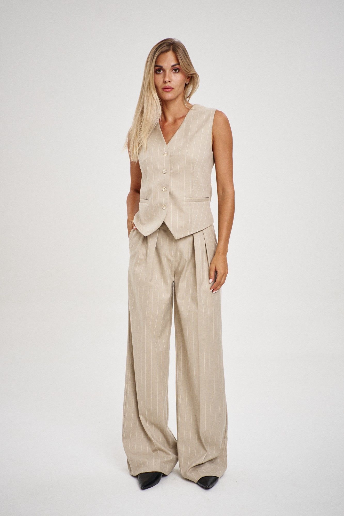 Классические брюки на притачном поясе, по задней части на резинке, со шлевками, спереди застежка на молнию и петлю-пуговицу, по переду защипы, посадка высокая. По передним половинкам брюк функциональные карманы и две двусторонние складки. Брюки выполнены из премиальной ткани костюмной группы. Брюки можно сочетать с легкими блузами, жакетами, свитерами, базовыми футболками или топами, миксуя с аксессуарами.Образ можно дополнить жакетом из основной ткани арт.2288 Длина по боковому шву 110 см, полуобхват талии 33 см , полуохват бедер 46 см в 42-м размере.