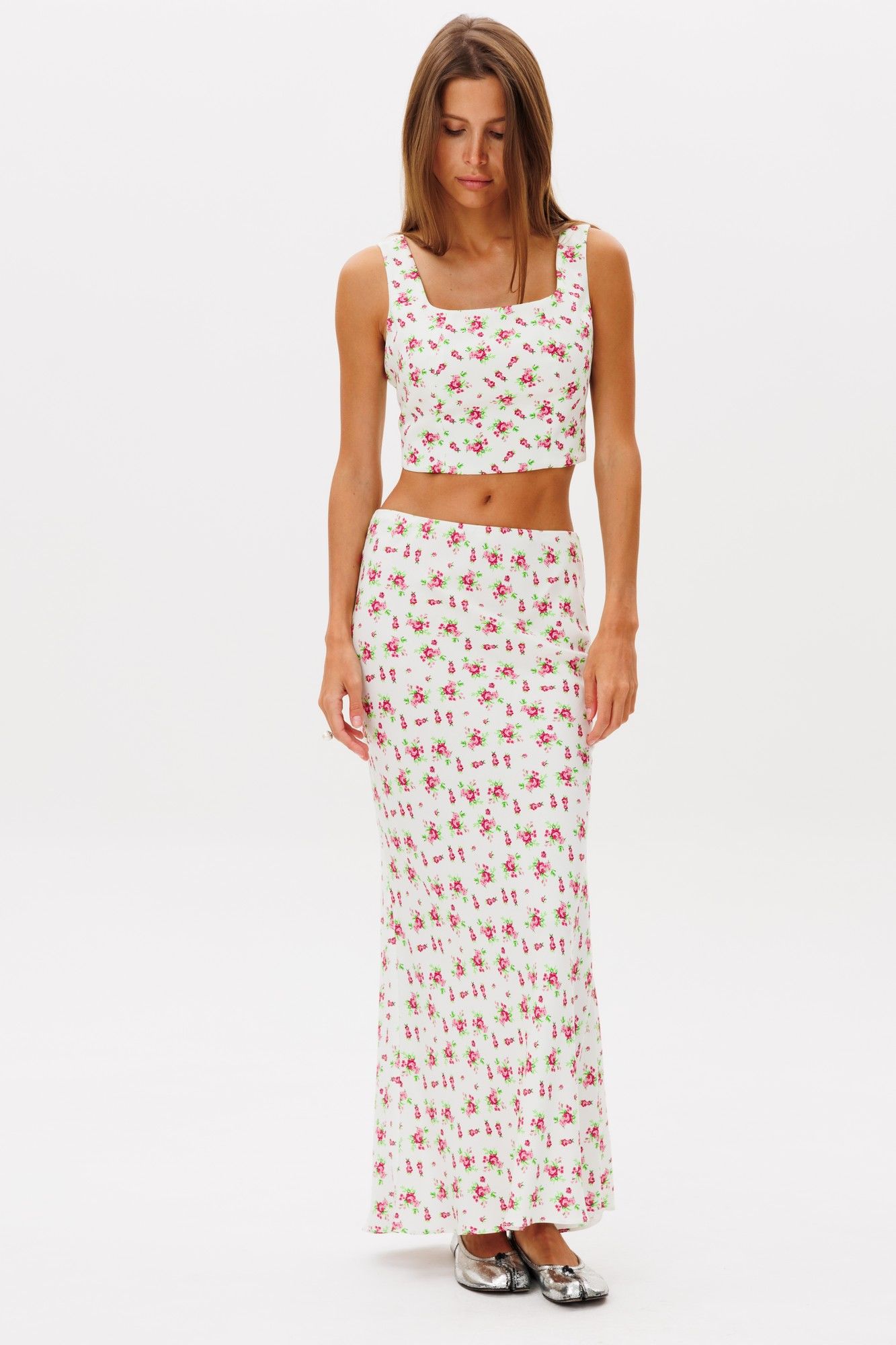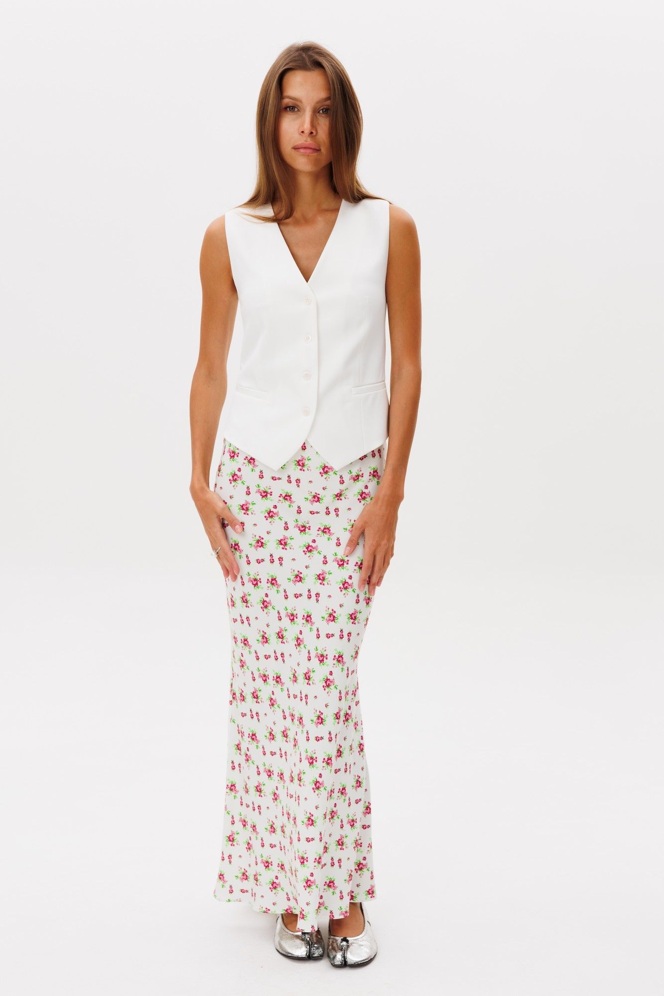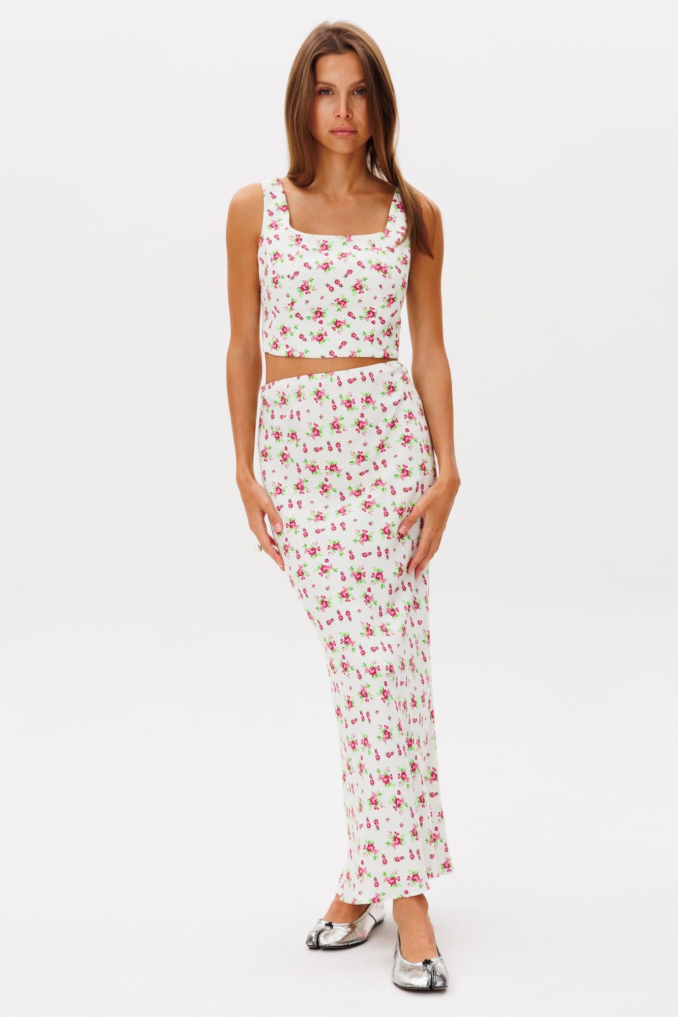 Юбка макси по косой с цветочным принтом - это элегантная и женственная вещь, которая может стать основой стильного образа.Юбка на резинке ,однослойная , полуприлегающего силуэта по косой, посадка высокая. Длина изделия 97 см. Юбку можно сочетать с хлопкой футболкой, , жакетами, жилеткой,топами или лонгсливами, миксуя обувью различного стиля. Выполнена из легкой вискозы.