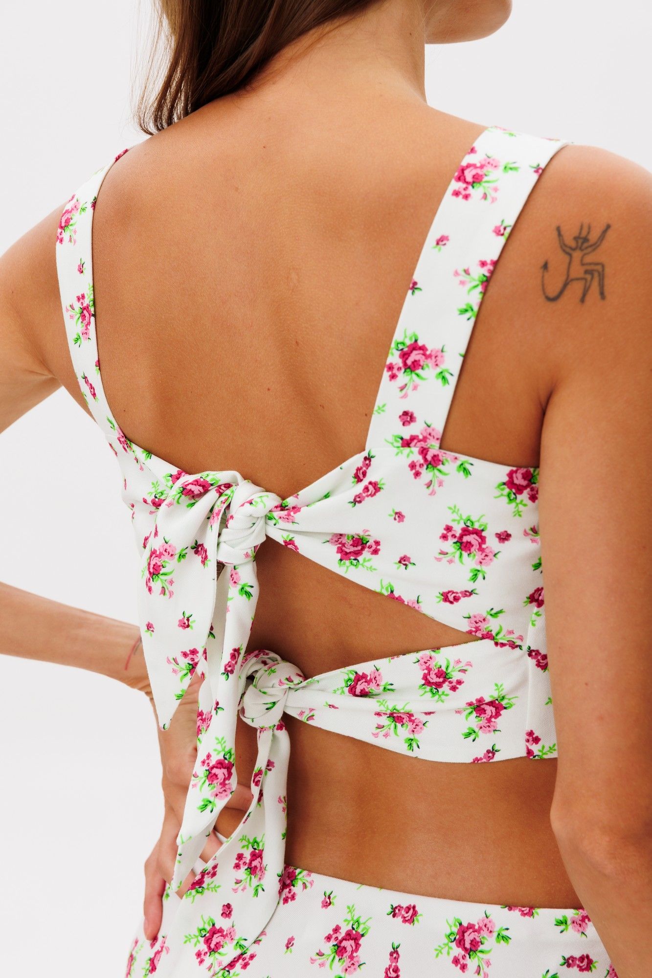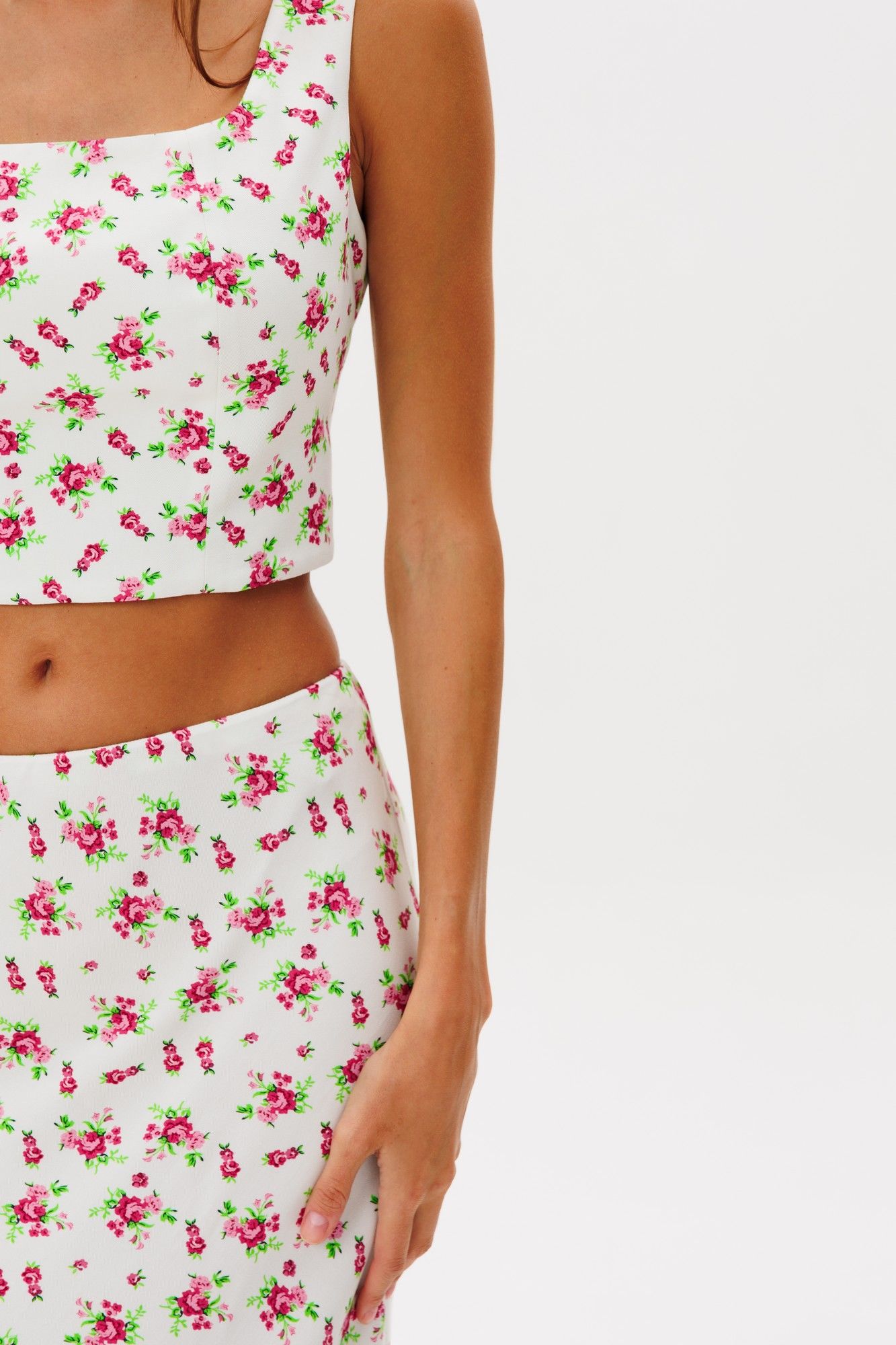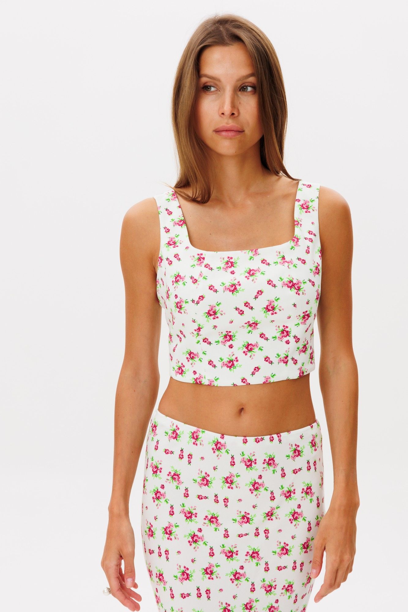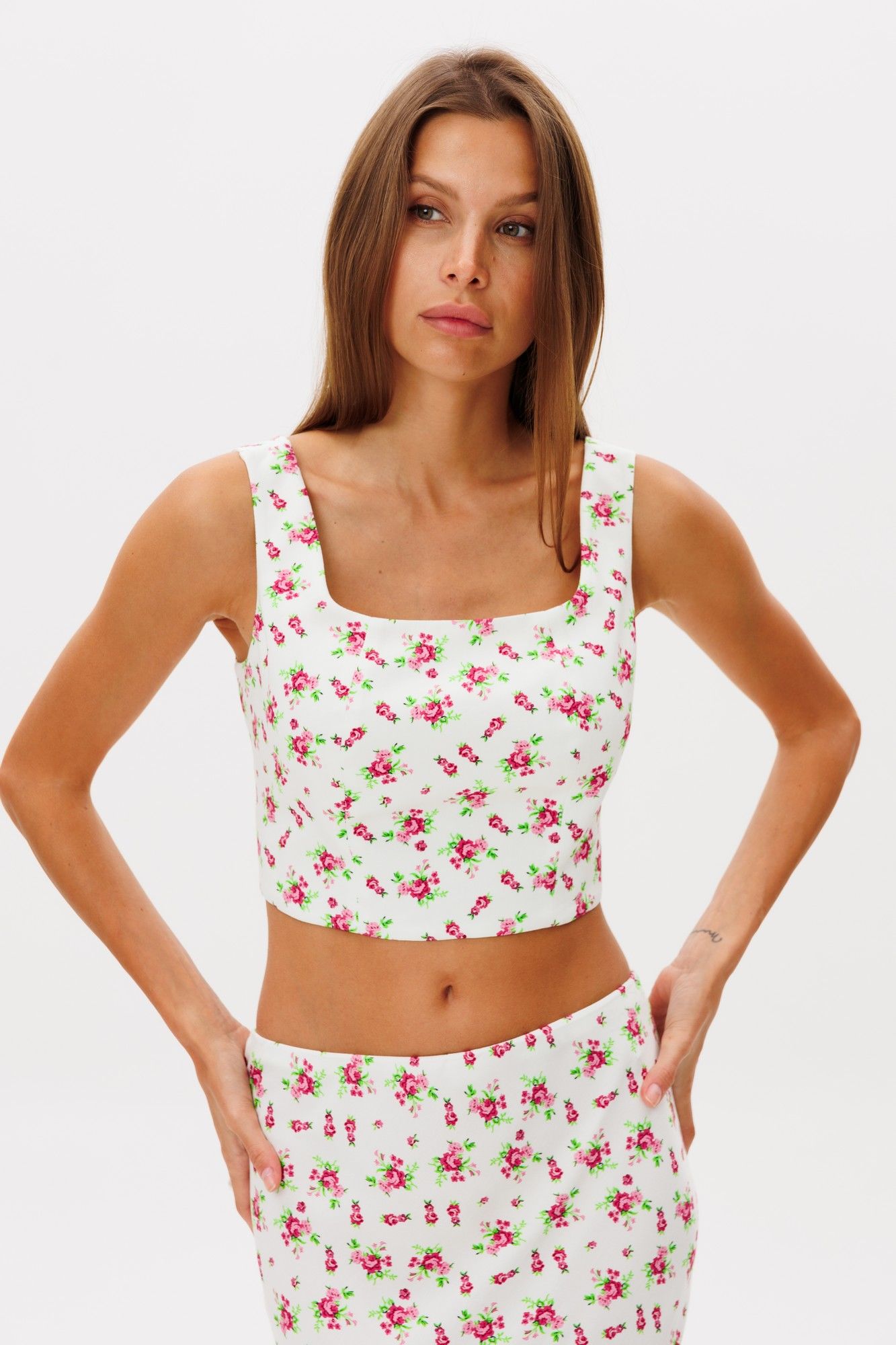 Укороченный топ с рельефами по переду , на бретелях, топ на подкладке из хлопка, по спинке фиксируется завязками. Длина изделия от верхней части бретели 37 см. Топ можно носить с брюками, шортами, или дополнив нашей юбкой арт. 2391.