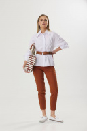 Женские летние брюки — идеальная находка для всех модных и стильных дам, которые хотят чувствовать себя комфортно и выглядеть безупречно в жаркие дни. Идеальное сочетание легкости, элегантности и свободы движений делает эти брюки незаменимыми в гардеробе современной женщины. Они выполнены из смесового материала с большим содержанием натурального хлопка. Важное преимущество летних брюк — универсальность. Они идеально подходят для создания повседневных и деловых образов. Сочетайте их с легкими топами, футболками, блузками или рубашками и вы будете выглядеть стильно и элегантно в любой ситуации. К тому же, летние брюки можно легко сочетать как с плоской обувью, так и с каблуками, создавая различные вариации образов.