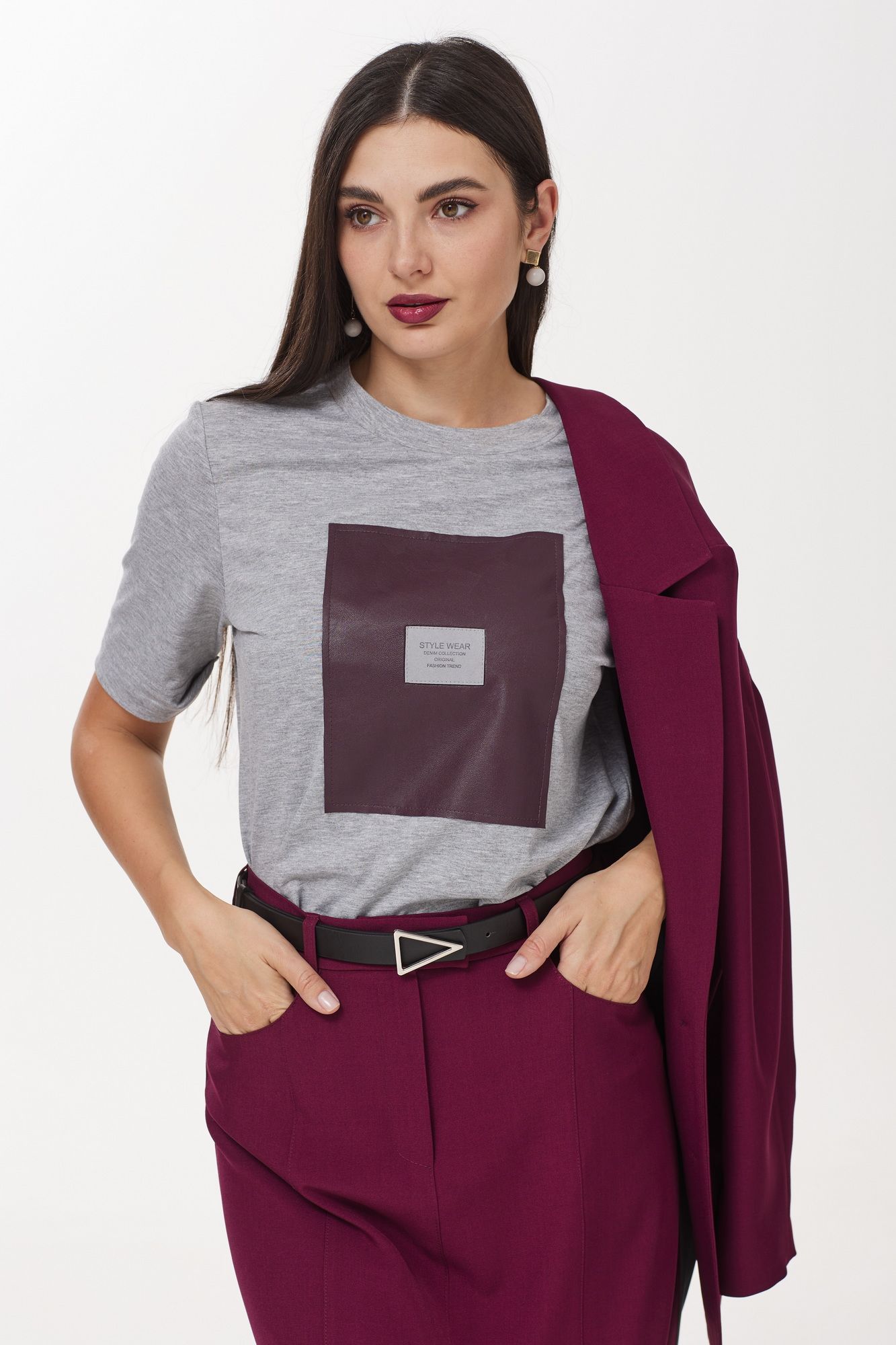 Если вы любите повседневный стиль и для вас важно качество одежды, женская трикотажная футболка от бренда ТВОЙ ИМИДЖ соответствует вашим ожиданиям. Модель имеет классический крой с округлым неглубоким вырезом и короткими рукавами с цельнокроеной манжетой. Футболку приятно носить, поскольку она изготовлена из хлопкового трикотажа с небольшим количеством эластана. Оригинальная футболка отличается выразительной абстрактной настрочной аппликацией из эко-кожи и декоративной нашивкой, производящей впечатление. Эффектная футболка позволит вам выглядеть модно даже в простом наряде и станет прекрасным дополнением ко многим комплектам.