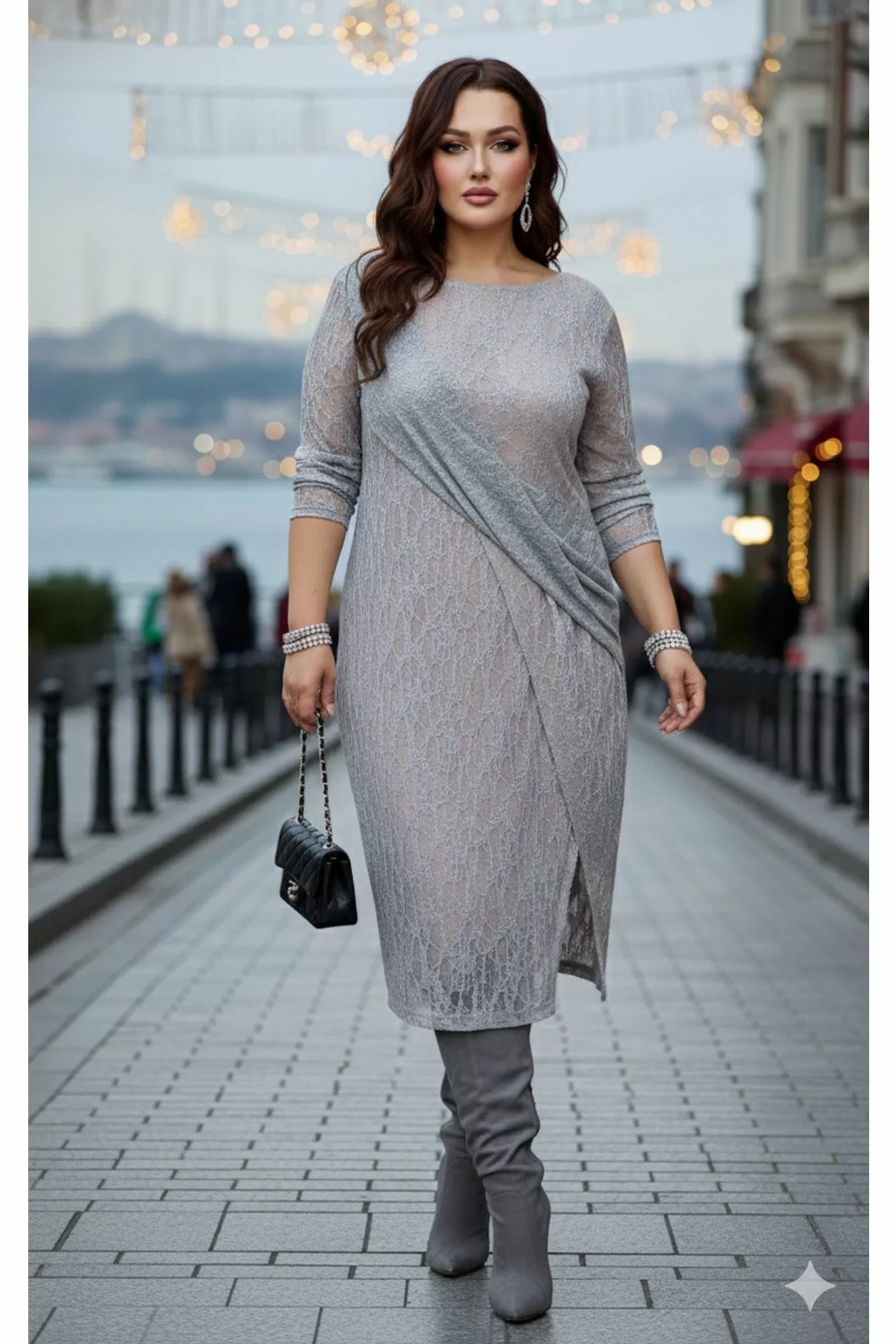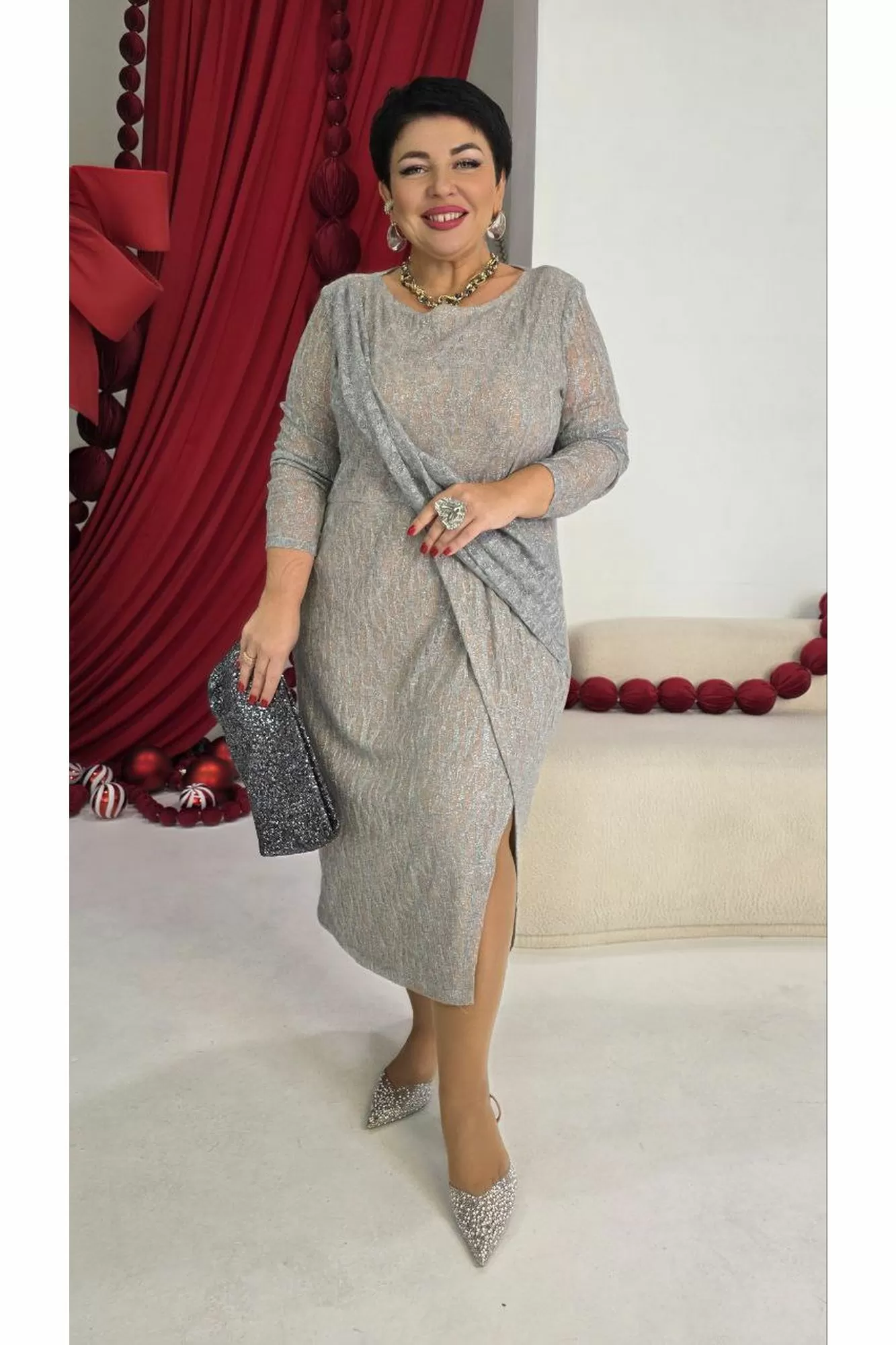 Стильное женское платье с идеальной посадкой, легко дополняется аксессуарами и обувью, создавая женственный образ. Ткань полупрозрачна - изящно и плавно обхватывает формы, повторяя контуры фигуры, создавая гармоничный силуэт. Акцент на талии достигается за счет аккуратной декоративной складки, которая визуально сужает талию и подчеркивает изгибы. Платье смотрится изысканно и достойно в любом световом окружении: вечерний образ приобретает легкую прозрачность и утонченную динамику, оставаясь при этом сдержанным и элегантным.Платье полуприлегающего силуэта с округлой формой горловины, платье отрезное по талии. По переду от подреза имитация «запаха» с неглубоким декоративными складками, которые добавляют динамичности образу. Спинка в платье без особенностей. Рукав втачной, длинный.Длина платья 118 см, длина рукава 61 см.